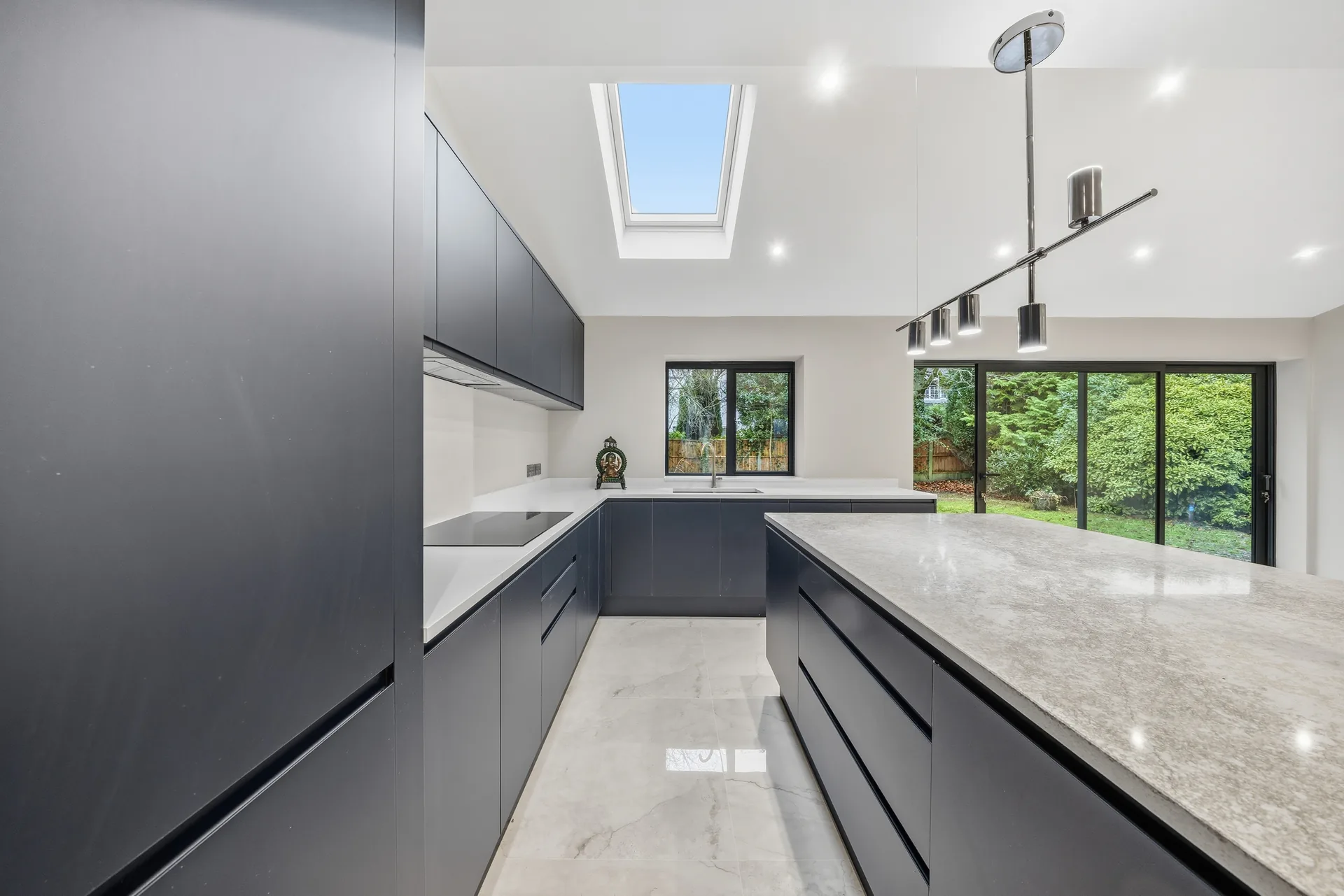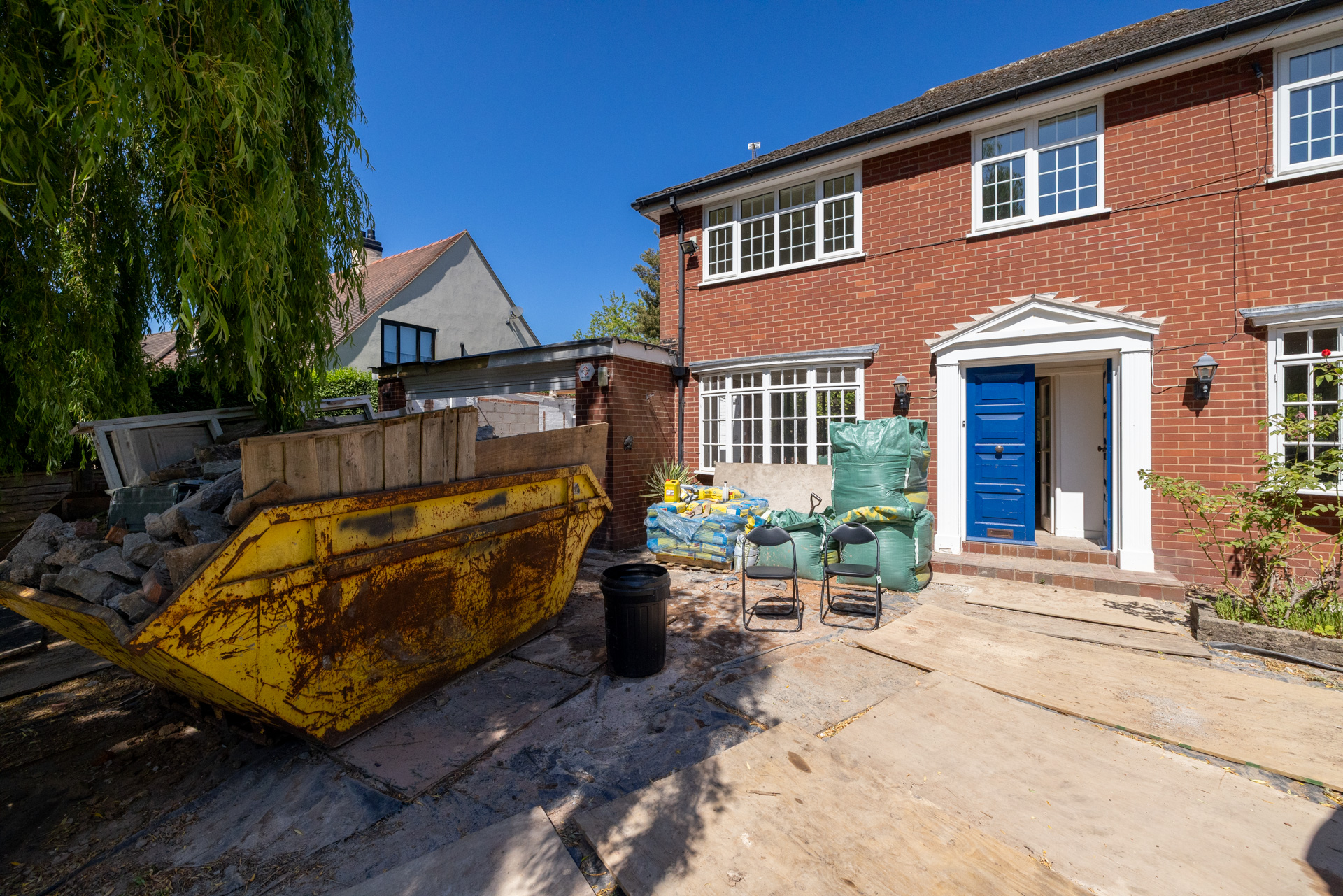 This project involves the complete transformation of a typical 1970s detached home in Hale. Originally, the property featured a central entrance with the garage to one side, a small rear kitchen, and four separate bedrooms upstairs.