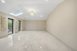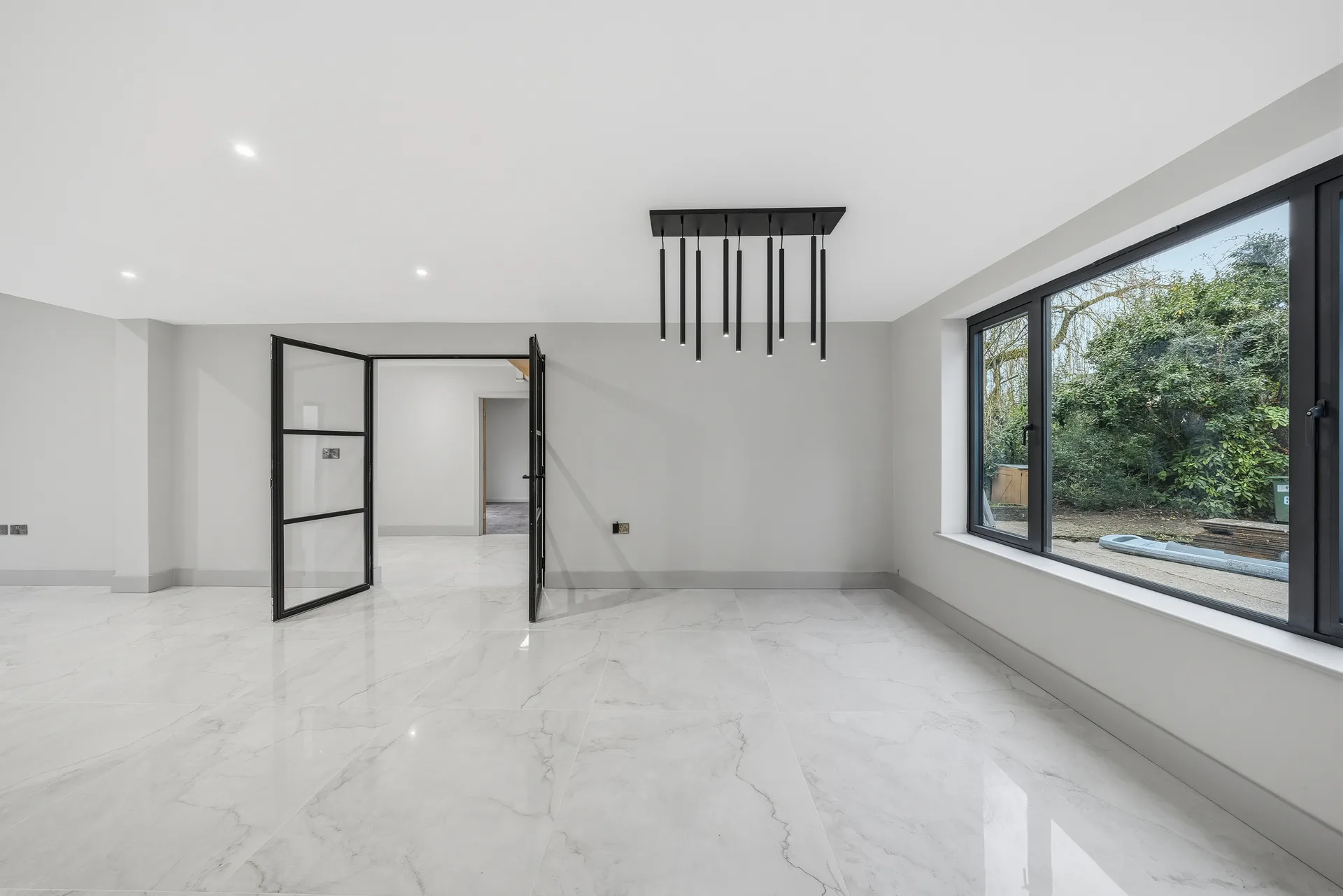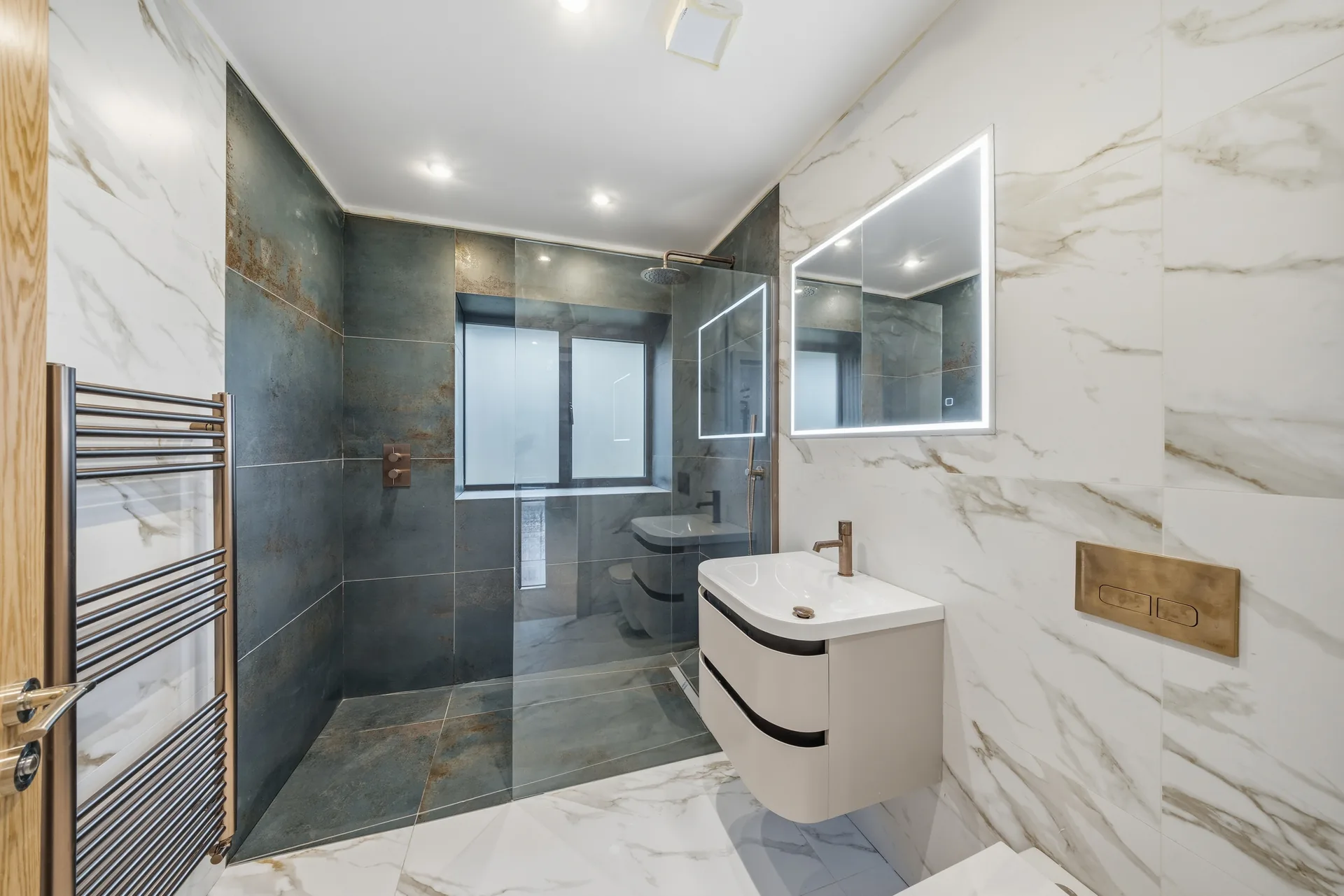 Upstairs, two of the original bedrooms have been combined to form a generous master suite, complete with a dressing area and ensuite bathroom. The remaining bedrooms retain their original layout, enhanced with new fitted wardrobes and contemporary finishes.